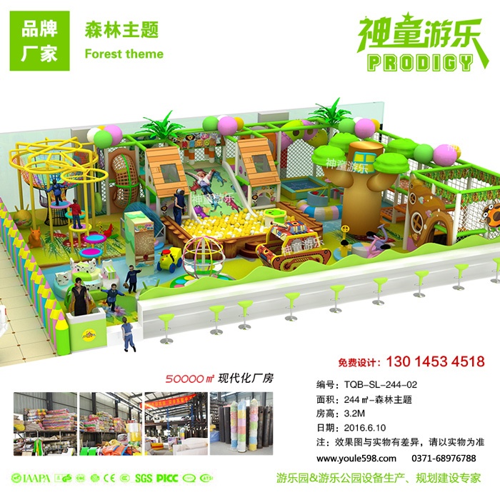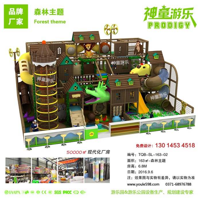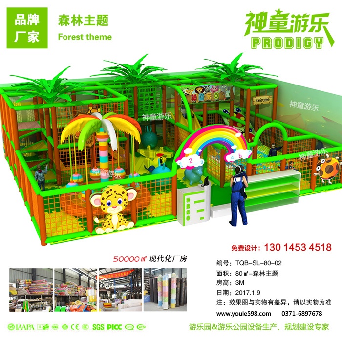 森林/丛林主题儿童淘气堡乐园,鲜艳明快、浓郁翠绿的色彩,瞬间吸引儿童的眼球,穿梭其中的各种森林卡通形象,绚丽多彩的灯光特效营造出梦幻和谐氛围,让你置身神秘森林,感受大自然的勃勃生机。