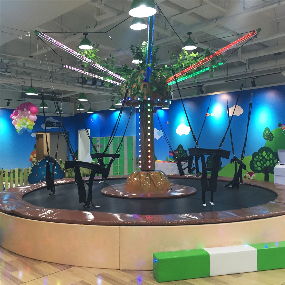 郑州神童创新型游乐设施糖果飞人旋转蹦床,打破传统,儿童弹跳蹦床全新升级,360度电动旋转蹦床,自由弹跳,花样翻滚,能够提高儿童肢体协调性、改善关节柔韧度、增强上下肢运动力量等,同时使孩子在快乐轻松的弹跳中培养自信勇敢不惧挑战的坚毅素质。新型游乐设备糖果飞人旋转蹦床采用遥控智能控制,绳索高度自动调节,大人小孩一起玩,游乐场吸金利器。