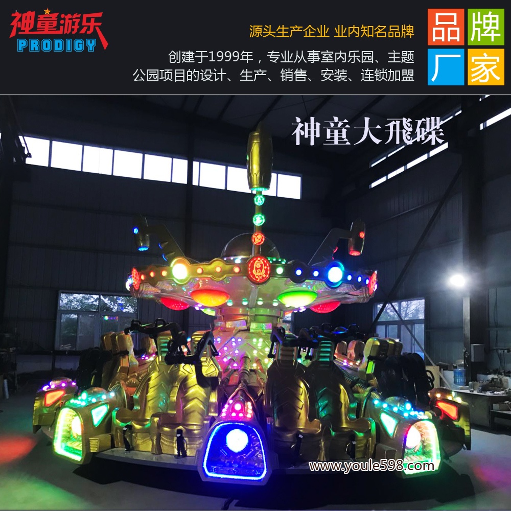 独特的神秘飞碟造型、炫彩靓丽的外观、旋转起伏摇曳不定的运行方式以及各种引人遐思的太空元素,公园广场游乐设备大飞碟这些对玩家有着强烈的吸引力。飞碟适用场地广泛,大型商场、小区游乐园、户外游乐场、公园、广场、景区皆可。该游乐设备投放之后维护方便,便于经营,基本上就是“躺着盈利”。儿童游乐场投放新设备首选神童20座大飞碟,拉动您的游乐场人气,带来新一轮的收益增长。