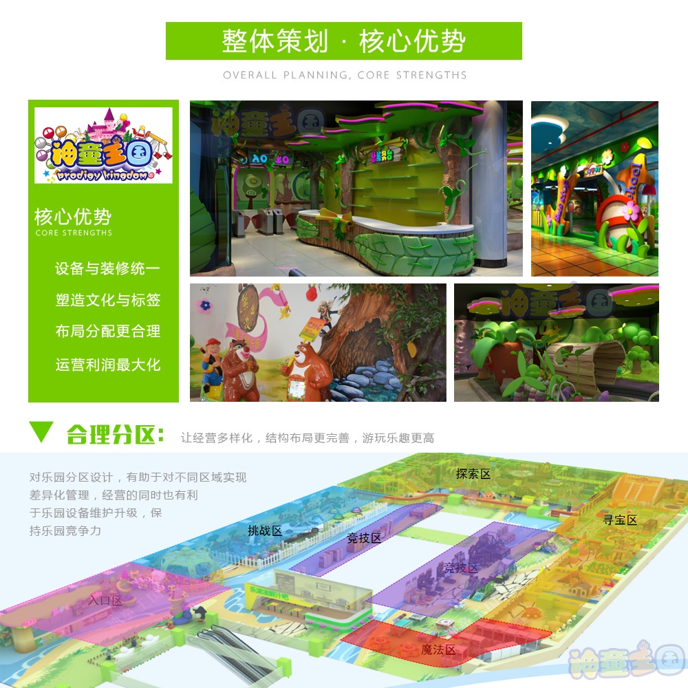 神童王国室内游乐公园为中高端家庭型游乐中心,崇尚大人孩子都能玩的理念,真正做到亲子同乐,收益翻番,由数千种主题产品,数百种国家专利,数万计的合作客户,,数不胜数的顾客群体作为支撑,致力于打造儿童亲子乐园第一品牌,中国游乐购物公园领导品牌,是商场、购物中心、城市综合体吸引人气,增加客户体验的不二之选。